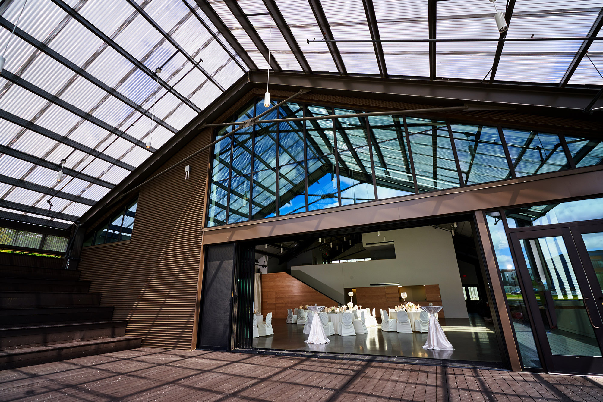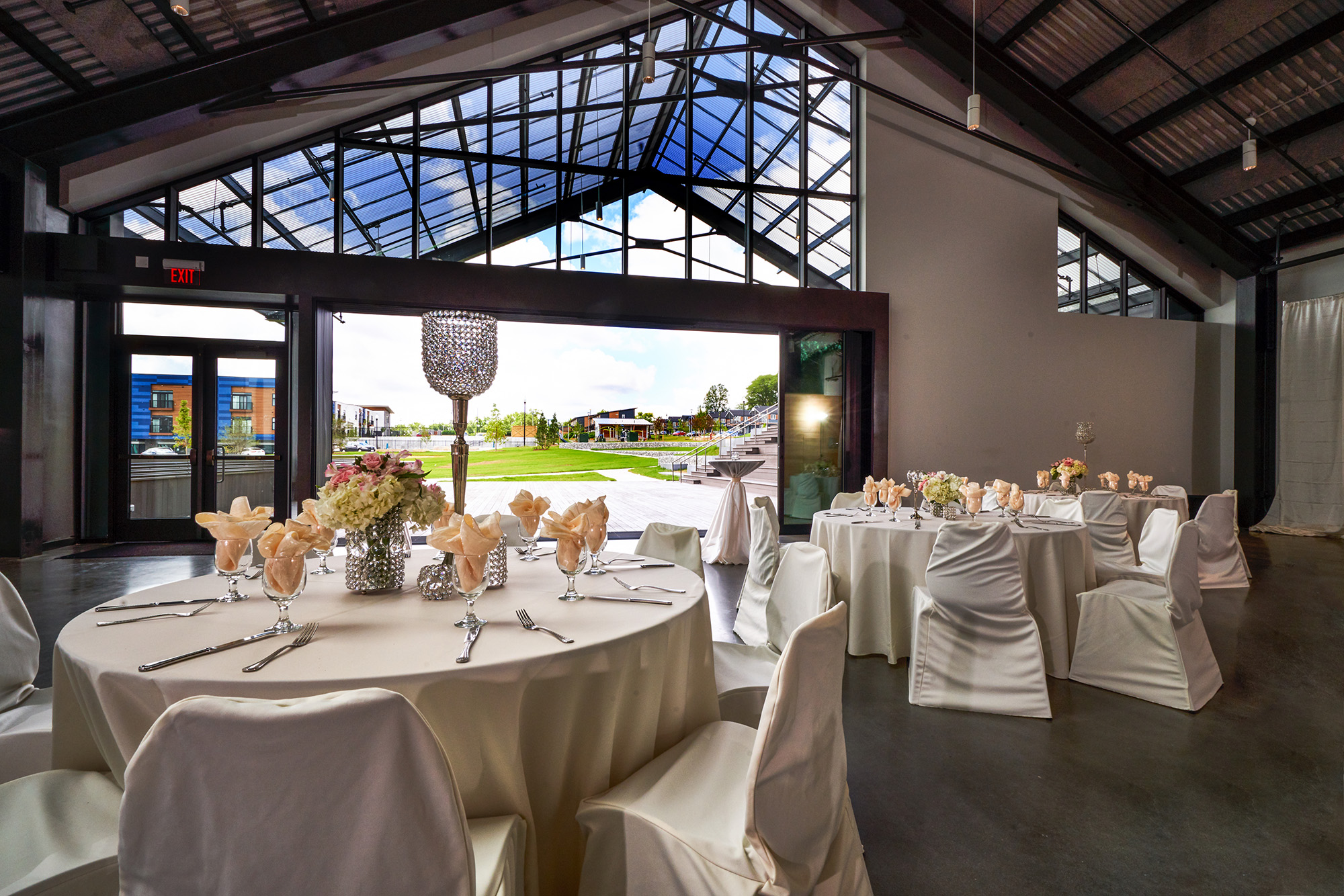 The Venue was designed to bring the community together to celebrate life’s precious moments. The Venue is a flexible space, accommodating parties, weddings, conferences, and more. With high ceilings, exposed beams, and vast natural light, our 4,000 square feet of elegant indoor space provides a picturesque setting for any event.